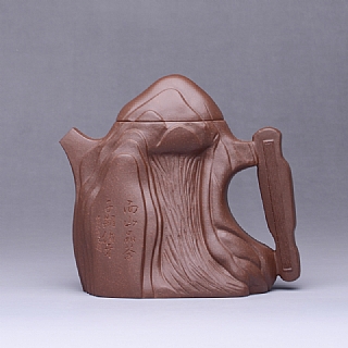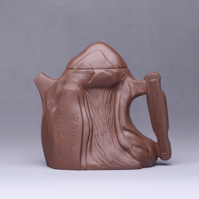 春秋战国时期,伯牙善弹琴,钟子期善于听琴,这就是“知音”一词的由来。本壶形似高山,泡茶之时流水淙淙,正如伯牙“高山流水”之琴音。壶上铭文“面山品茶,子期伯牙。”执此壶泡茶,与座同饮者皆知音也。