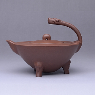 自我的《龙禧壶》出窑后,我连续几天对着它,和它聊天、同它神交,甚至梦里觉得它会动了。我觉得它回头的姿态似乎更有灵气,于是做了这把壶。
